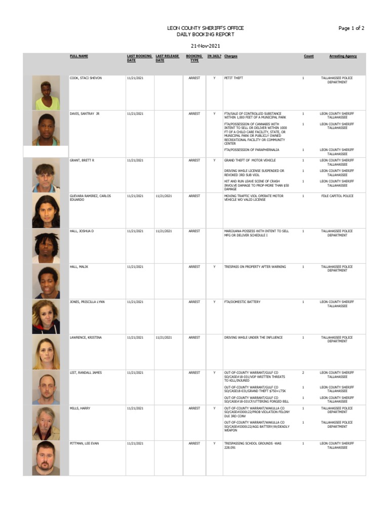 Leon County Booking Report Nov 22 2021 Pdf Arrest Criminology